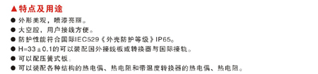 ●可以裝配各種結構的熱電偶、熱電阻和帶溫度轉換器的熱電偶、熱電阻。