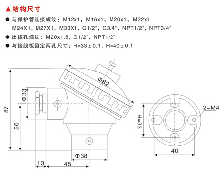 與保護管連接螺紋:M12x1,M16x1,M20x1,M22x1,M24X1,M27X1,M33X1,G1/2",G3/4",NPT1/2",NPT3/4"