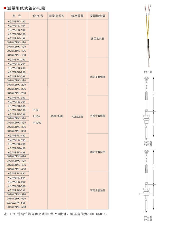 帶測量引線式鎧裝鉑熱電阻,采用引進型的鉑電阻測溫元件,具有靈敏、熱響應(yīng)時間快、質(zhì)量穩(wěn)定、易彎曲、抗震性好、使用壽命長等優(yōu)點。鎧裝鉑電阻外保護套采用不銹鋼,內(nèi)充滿高密度氧化物質(zhì)絕緣體,因此,它具有很強