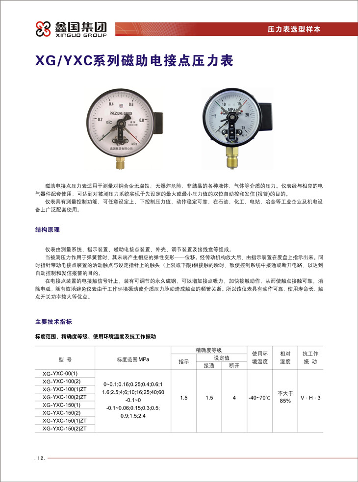 磁助電接點壓力表具有測量控制功能,可任意設定上、下控制壓力值,動作穩(wěn)定可靠,在石油、化工、電站、冶金等工業(yè)企業(yè)及機電設備上廣泛配套使用。