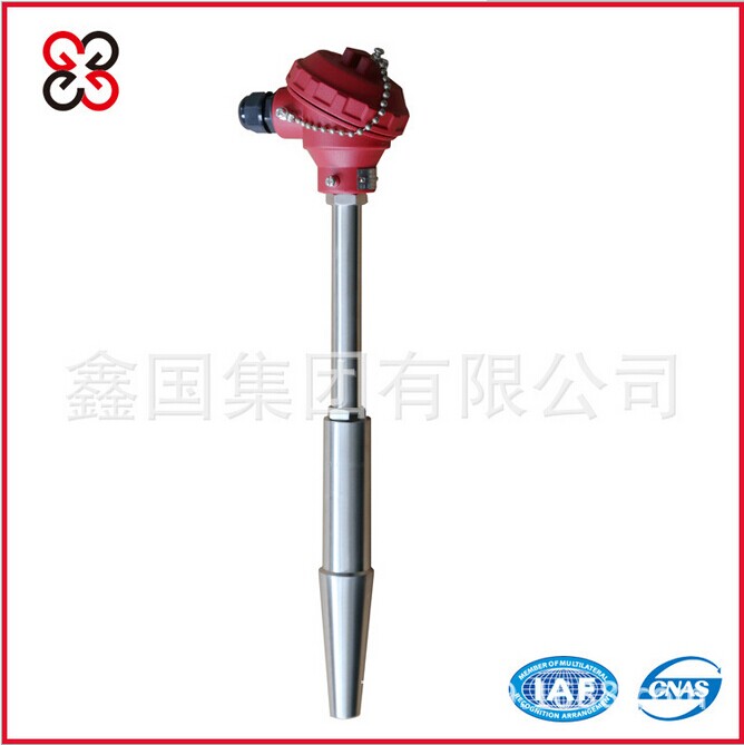 高溫高壓熱電偶(熱電阻),其整體鉆孔保護套管采用焊接的方法與主設備固定密封,它可用來測量電廠管路的蒸汽或水溫。根據(jù)所使用的壓力、溫度和流速的差異,具有兩種相應的結構和安裝方式,供用戶選擇。本熱電偶(